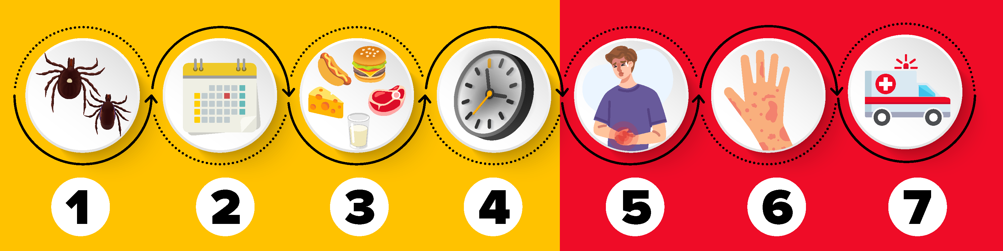 - Unlike conditions where symptoms occur without a specific trigger, AGS symptoms are directly related with the consumption of foods or food products that contain alpha-gal.