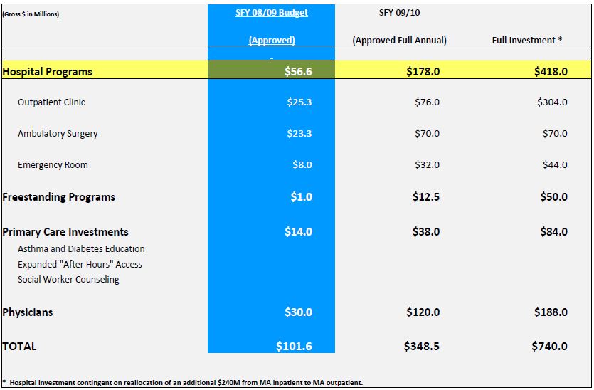 - $57M investment for hospitals in SFY 08/09.