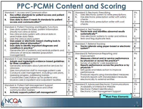 To be recognized as a medical home, providers need to demonstrate they can meet at least five of the following 10 criteria (i.e. achieve a minimum of 25 points out of 100 possible to attain the first of three levels of recognition):