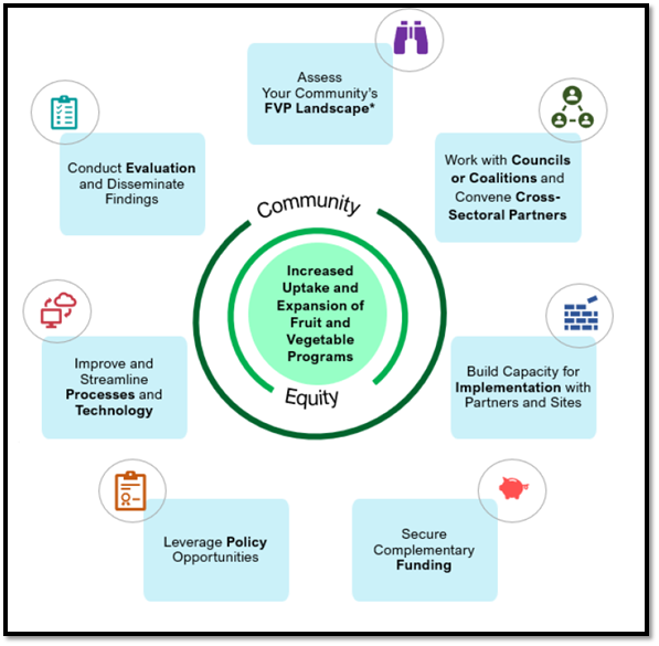 To learn more about potential state and local activities to support these recommended public health actions, visit CDC's web page: Strategies for Fruit and Vegetable Voucher Incentives and Produce Prescriptions.